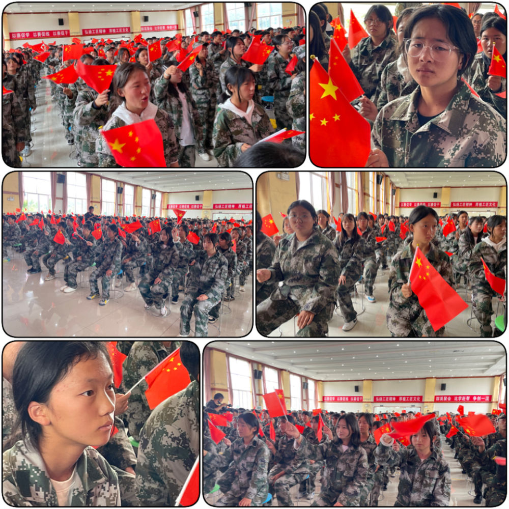 玉龍縣職業(yè)高級(jí)中學(xué)學(xué)生揮舞手中的國旗。(麗江融媒記者 楊四見 攝)