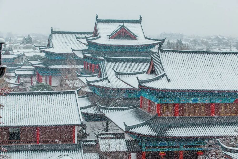 攝影作品《雪落木府》。(牛玉龍 攝)