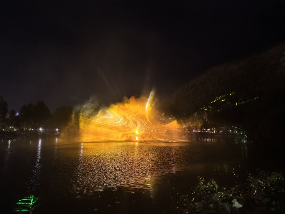 黑龍?zhí)豆珗@水幕秀。(麗江融媒記者 木雯嬌 攝)
