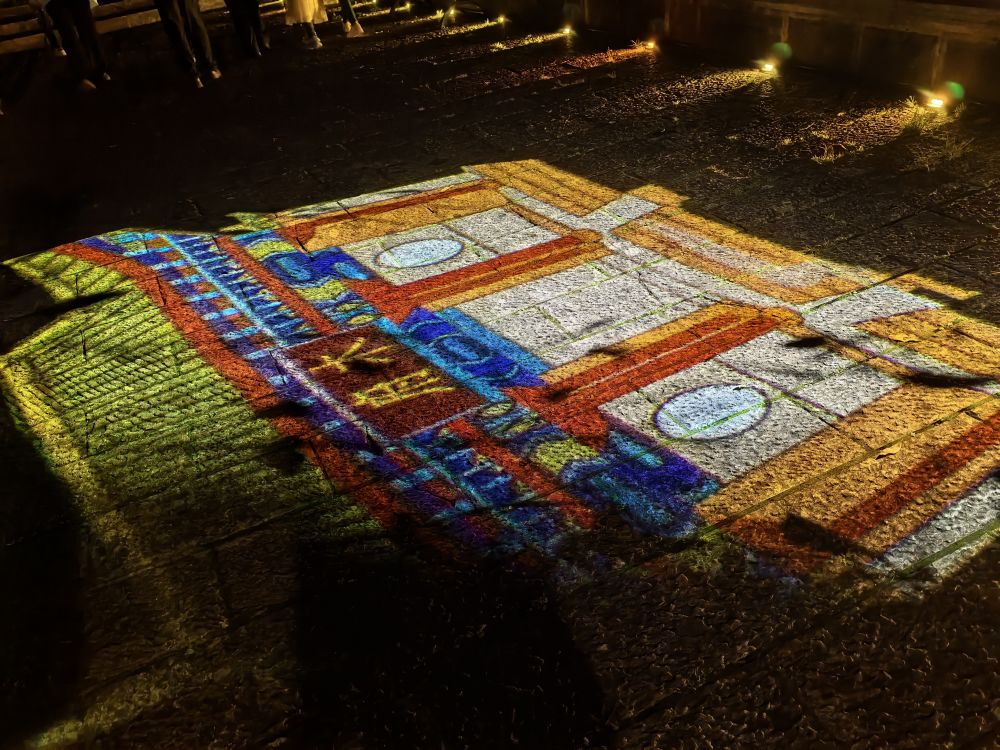 10月12日,玉河走廊路面上的燈光亮化工程。(麗江融媒記者 木雯嬌 攝)