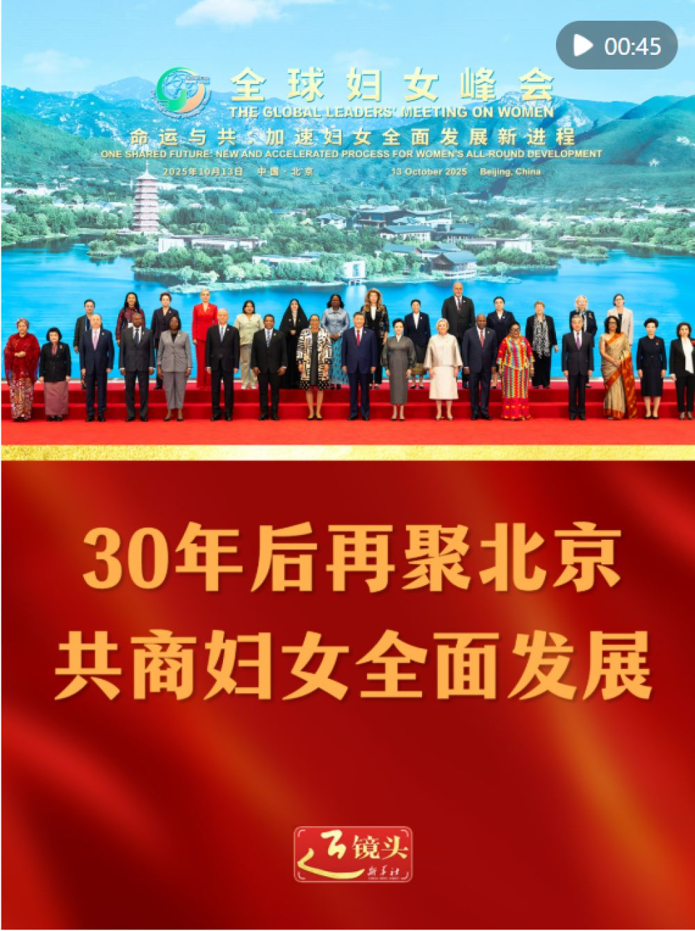 10月13日上午,國家主席習近平出席全球婦女峰會開幕式并發(fā)表主旨講話。1995年秋,北京世界婦女大會召開,樹立起全球婦女事業(yè)發(fā)展的一座里程碑。30年后,在這收獲的季節(jié),中國同聯(lián)合國婦女署在北京合作舉辦全球婦女峰會,傳承弘揚北京世婦會精神,為加速婦女全面發(fā)展新進程譜寫新篇。