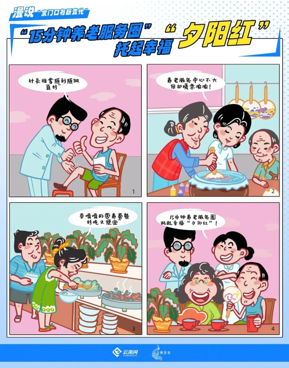 云南網(wǎng)聯(lián)合云南發(fā)布共同策劃推出【漫說(shuō)“家門(mén)口有新變化”】系列融媒報(bào)道,聚焦我省就業(yè)、教育、醫(yī)療、“一老一小”等民生領(lǐng)域,從“小故事”看大變化。第二期,咱們走進(jìn)曲靖“15分鐘養(yǎng)老服務(wù)圈”,看看當(dāng)?shù)厥侨绾瓮衅鹦腋!跋﹃?yáng)紅”?
