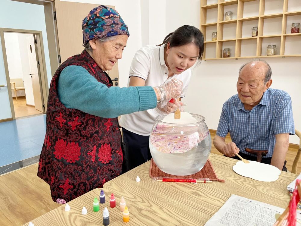 老人們制作手工藝品、創(chuàng)作書(shū)畫(huà)