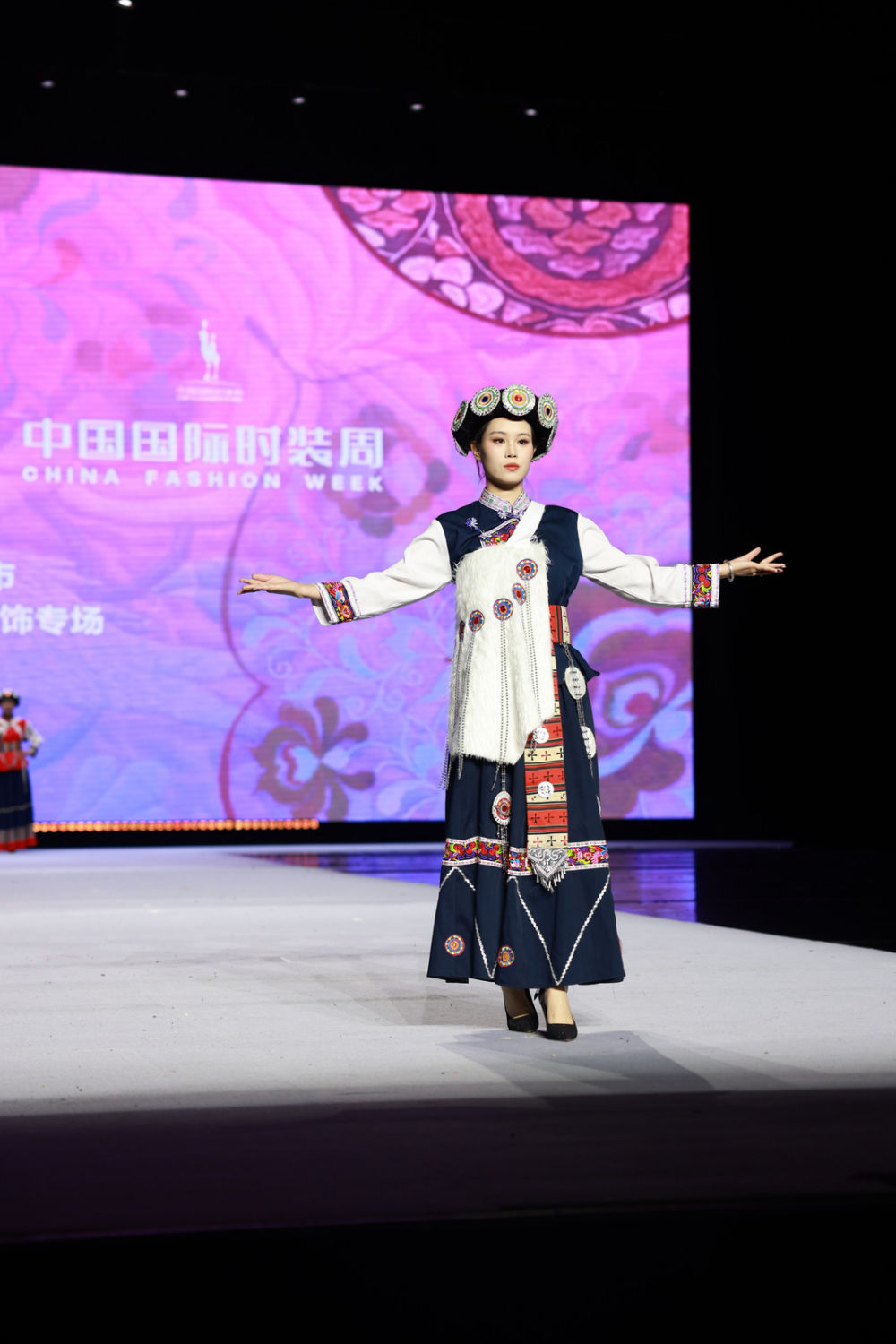 麗江市非遺服裝服飾專場,模特展示摩梭人服飾。(供圖)