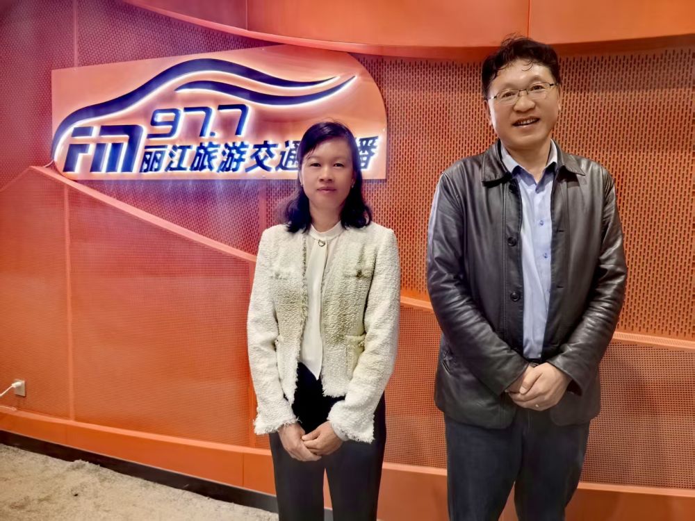 10月16日,麗江市糧食和物資儲(chǔ)備局黨組成員、副局長(zhǎng)楊文忠,麗江市糧食和物資儲(chǔ)備局糧食和物資儲(chǔ)備科科長(zhǎng)鄧麗,做客FM97.7麗江旅游交通廣播。(麗江融媒記者 梁國(guó)宏 攝)