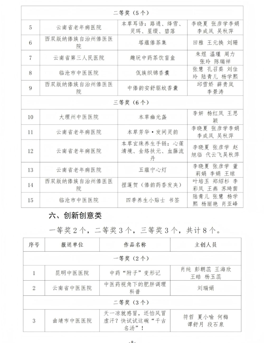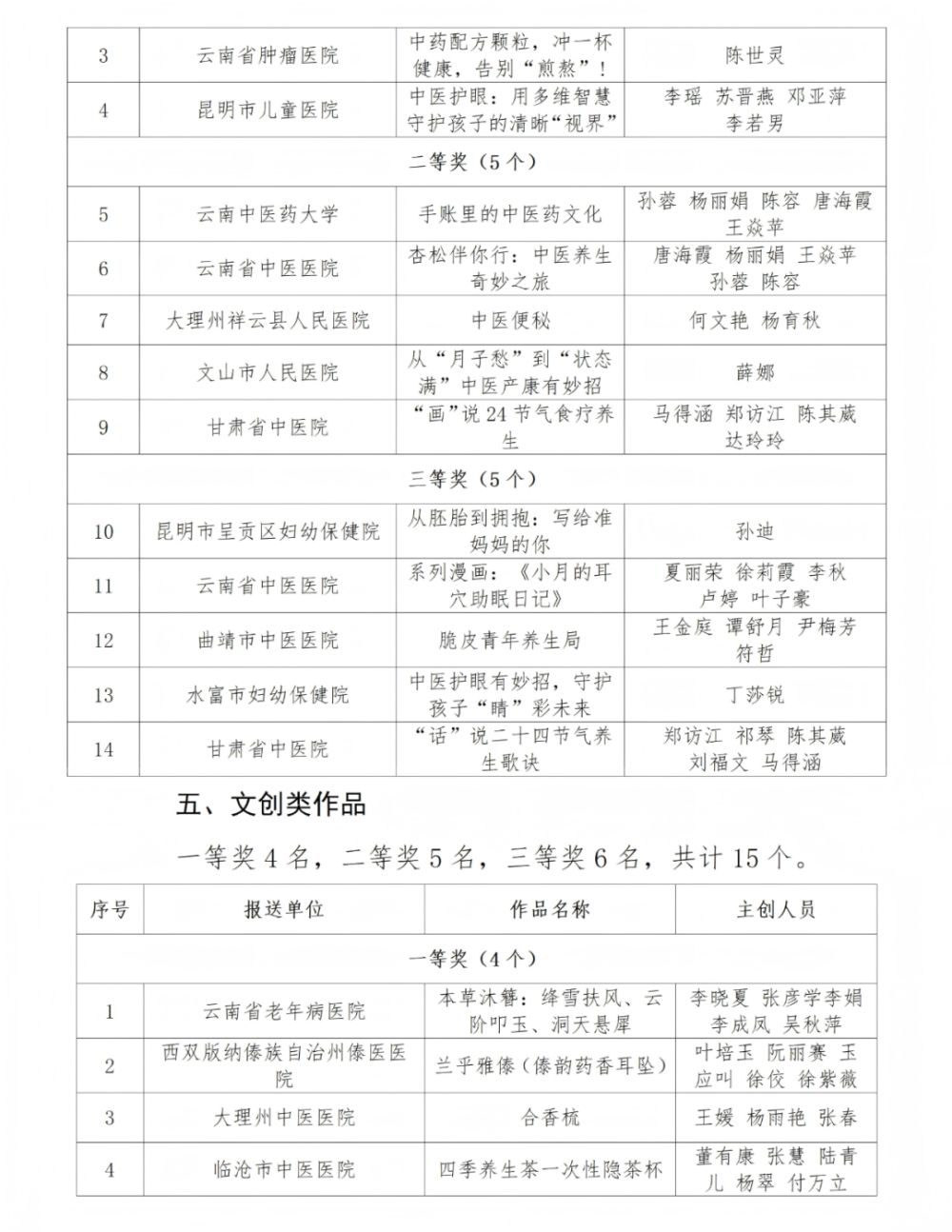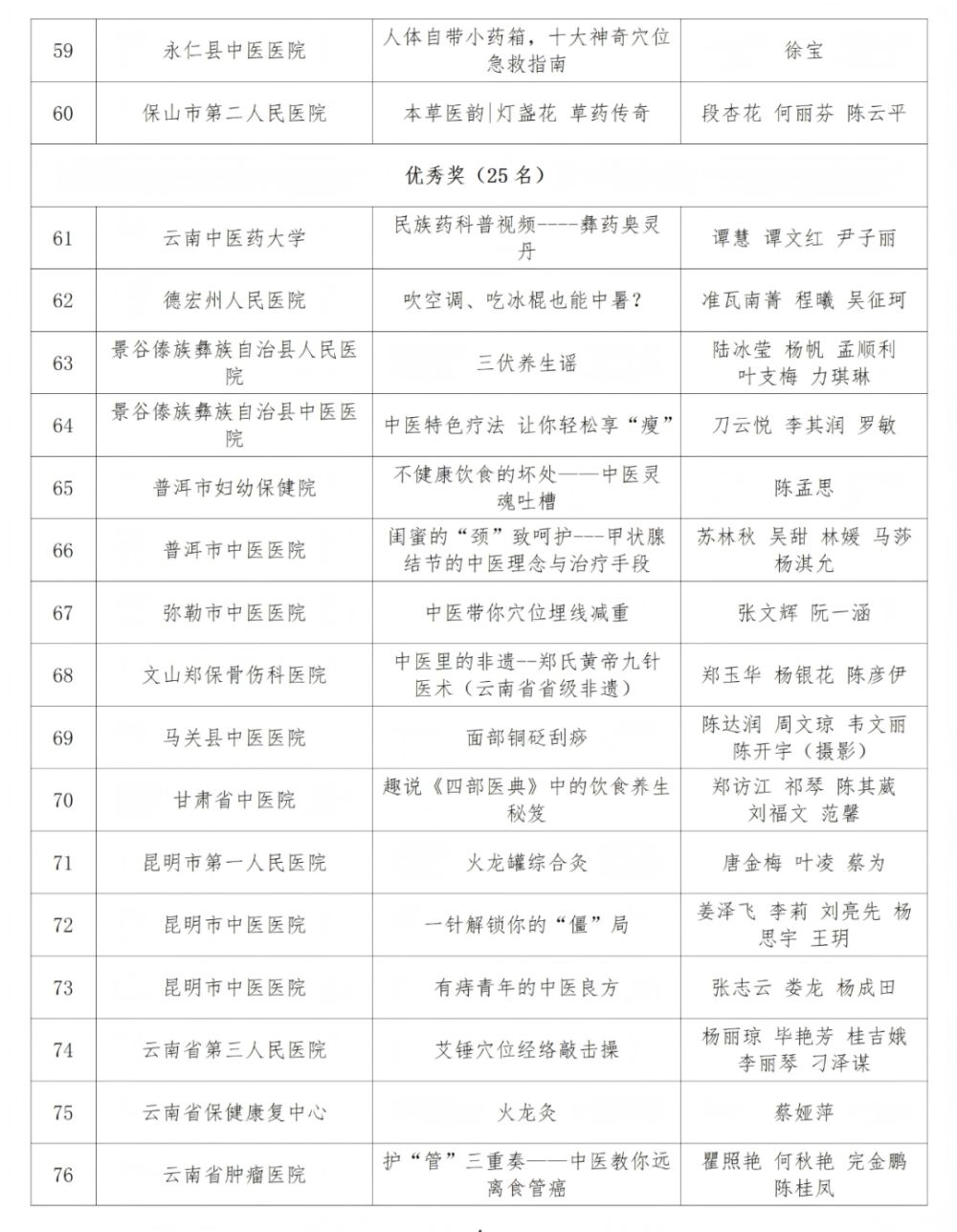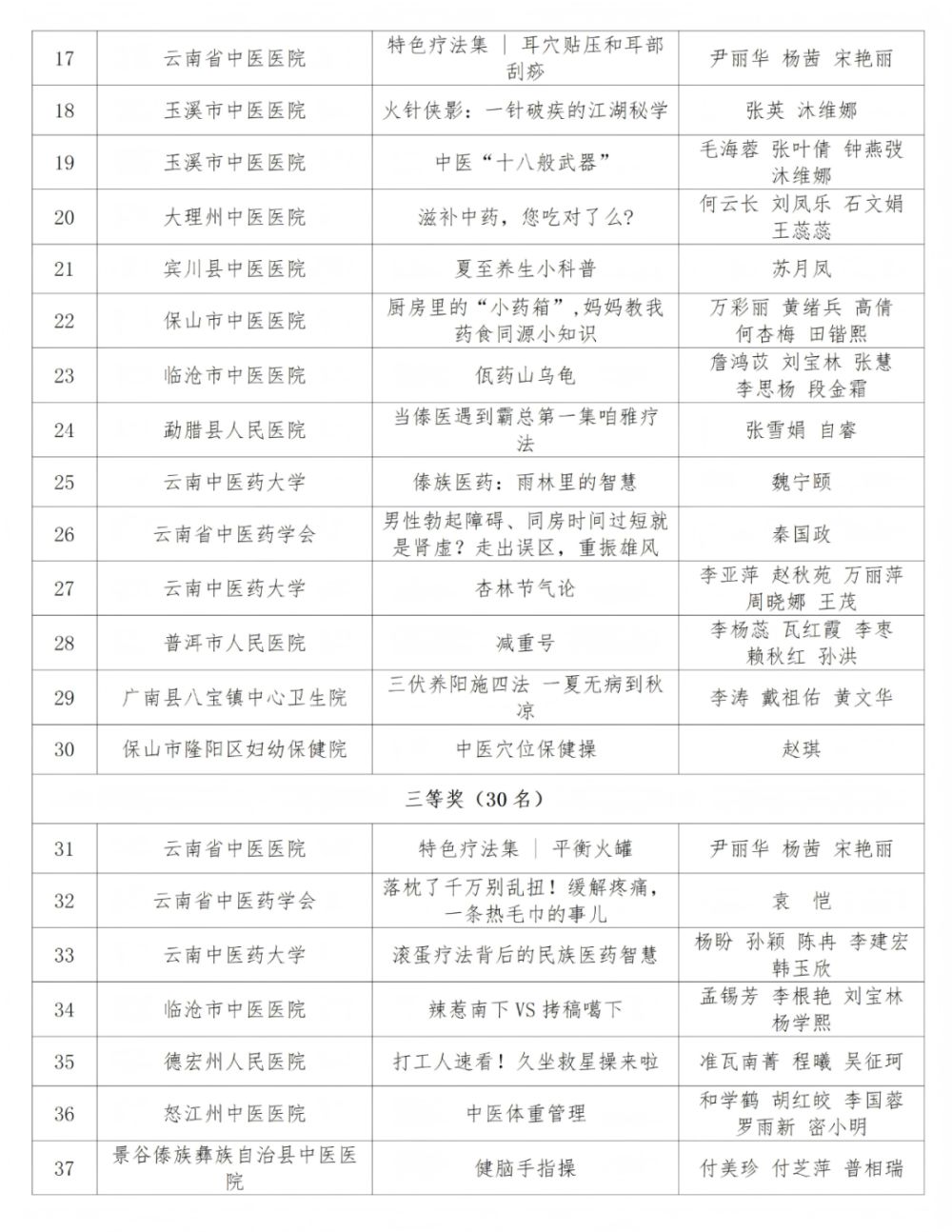 云南省中醫(yī)藥健康文化科普作品征集大賽獲獎(jiǎng)名單公示