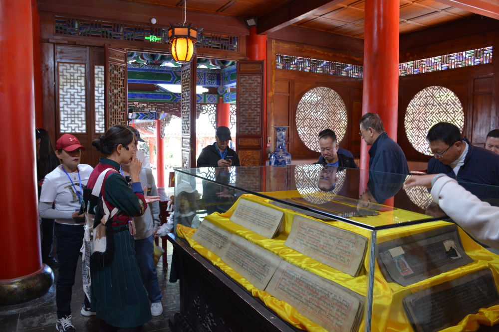 僑界旅游業(yè)代表參觀木府文獻(xiàn)。(麗江融媒 記者 呂坤釗 攝)