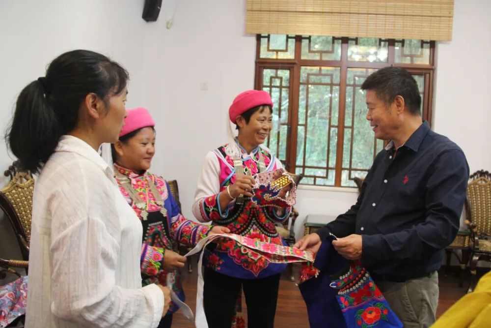 熊育群說(shuō):“我感到特別欣慰,因?yàn)檫@個(gè)村的民族文化保存的非常好。首先,我看到花鼓舞隊(duì)員們都穿著民族服裝,神采飛揚(yáng),這說(shuō)明她們的日常生活是愉快、充盈的。更讓我印象深刻的是當(dāng)?shù)氐淖骷胰后w,在村子里能有這么多人堅(jiān)持寫(xiě)作,并且作品能登上國(guó)家級(jí)刊物,這充分體現(xiàn)了當(dāng)?shù)厣詈竦奈幕滋N(yùn)。此外,精美的刺繡也證明這里的文化傳統(tǒng)得到了很好的傳承,非常難得?!?/span>