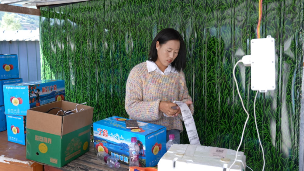 除了客商上門收購,沙長發(fā)還在寧蒗縣城附近的蘋果交易市場設(shè)立了銷售點(diǎn)。這里不僅有過往游客駐足挑選,快遞企業(yè)還專門設(shè)立了臨時收寄點(diǎn),確保新鮮蘋果能第一時間發(fā)往全國各地。“從10月20日開始,每天差不多能發(fā)出1000多件蘋果,發(fā)往上海、廣東的訂單最多?!眻A通快遞該收發(fā)點(diǎn)負(fù)責(zé)人楊學(xué)英說,快遞車每天往返市場,把高原的“甜”送到了全國消費(fèi)者手中。