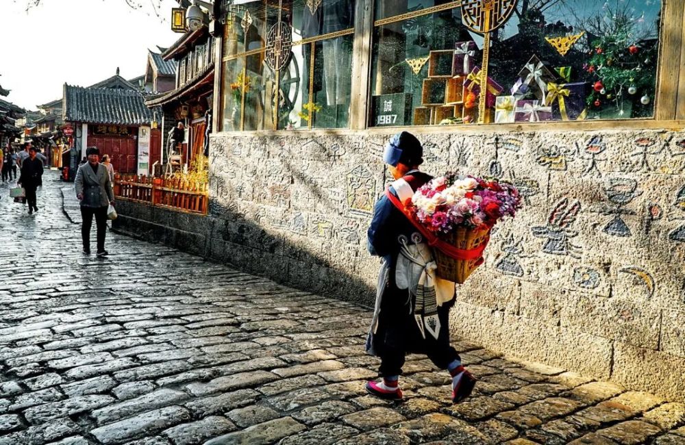 清晨,陽(yáng)光從獅子山頂緩緩下移,將整座麗江古城擁進(jìn)金色的懷抱。四方街上,商戶們紛紛打開(kāi)木質(zhì)雕花門(mén)窗迎客;三眼井邊,已經(jīng)有居民在挑水、洗菜;游客三五成群,沿著石板路鋪就的小巷,從四面八方涌進(jìn)這座百年古城,這就是麗江古城一個(gè)尋常的早晨。