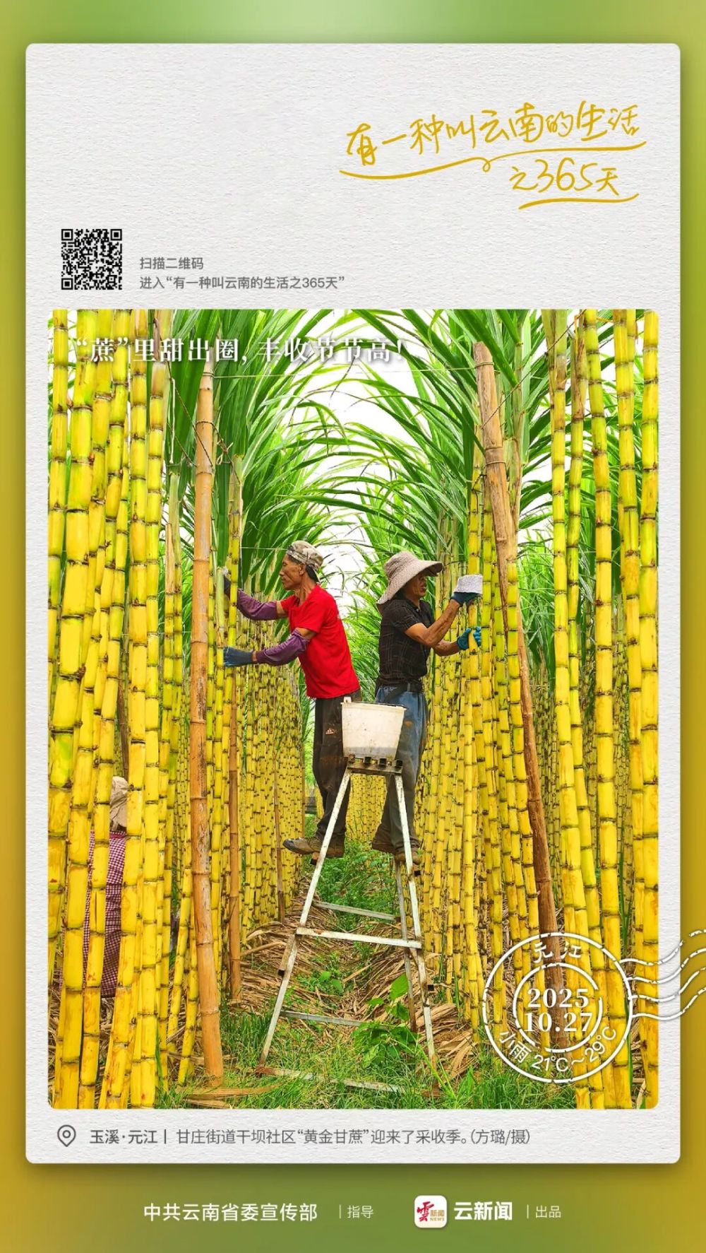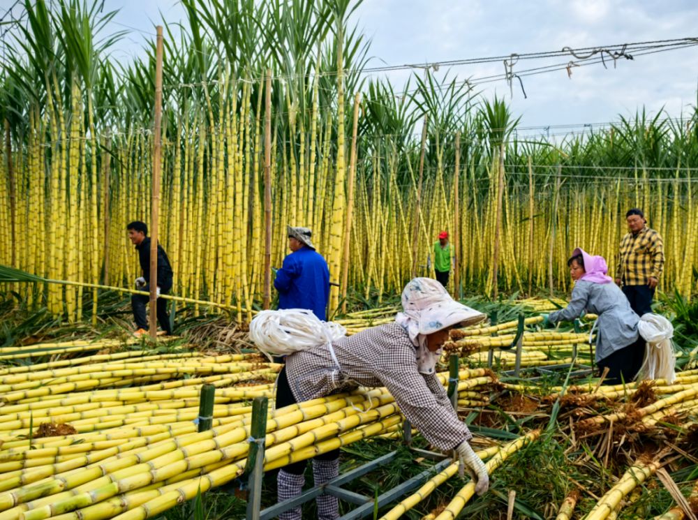 金秋十月,果蔬飄香。近日,云南省玉溪市元江哈尼族彝族傣族自治縣甘莊街道干壩社區(qū)的甘蔗迎來了采收季。一排排挺拔的蔗林披上金光、隨風(fēng)輕擺,仿佛在低語著豐收的喜悅。工人們穿梭其間,揮鐮斷梢,捆扎搬運(yùn),笑聲與蔗葉的沙沙聲交織成一首秋日歡歌。