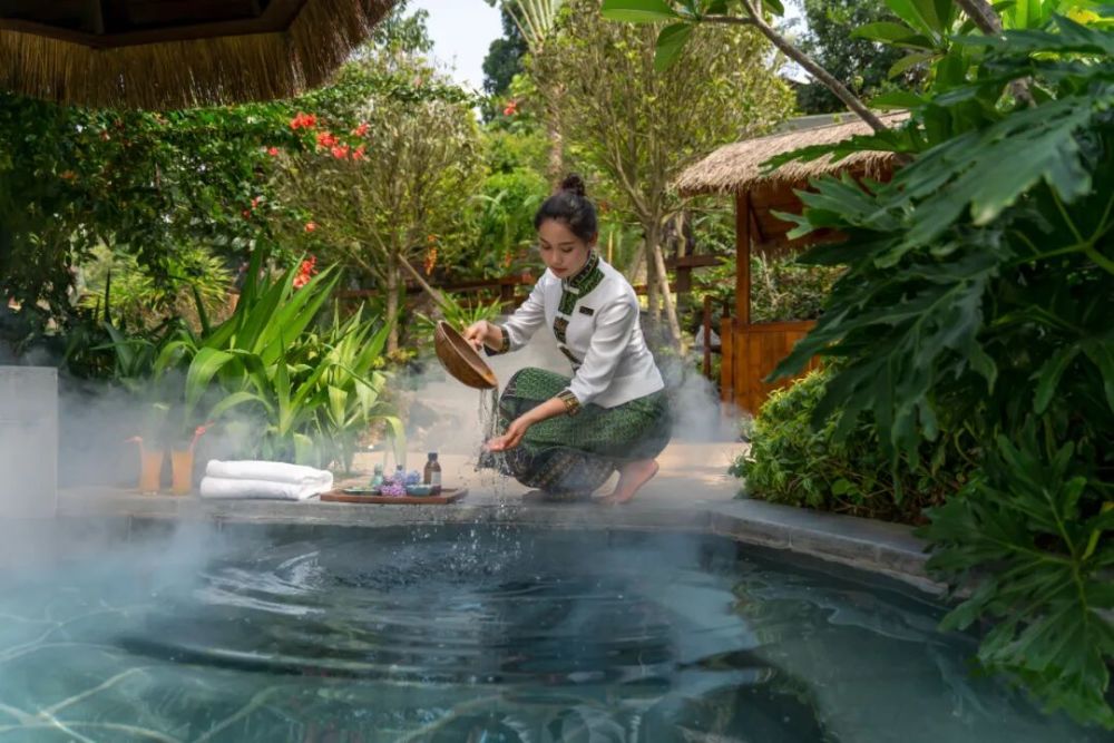 82處溫泉如溫暖脈絡串聯(lián)起全域。芒蚌溫泉度假村40多間客房和主題各異的露天泡池能提供不一樣的溫泉體驗,吸引了各地旅居客戶,他們一住就是一個月甚至更久,10月份開始入住趨于飽和。梁河南甸伴山云隱康養(yǎng)溫泉度假村景區(qū)四季皆有客來,過冬避暑各不相同。泡完偏硅酸含量較高的溫泉,能跟著當?shù)厝藢W做葫蘆絲,能在保持了原始風貌和地貌的景區(qū)里探尋非遺、抗戰(zhàn)歷史與進士文化,還能在《遮帕麻和遮咪麻》的彩繪畫前聽個悠長的故事。盈江云南之藍的“氟泉”泡池旁能提供游客休憩,抬眼就是草地和江水,設計師把風景留足,周邊還有瑞麗江—大盈江國家風景名勝區(qū)、大盈江國家濕地公園、中國犀鳥谷、詩蜜娃底、華夏榕樹王等數(shù)十個旅游資源景點,引入的大盈江水形成了戶戶濱水而居的田園水系生活和康養(yǎng)度假地。