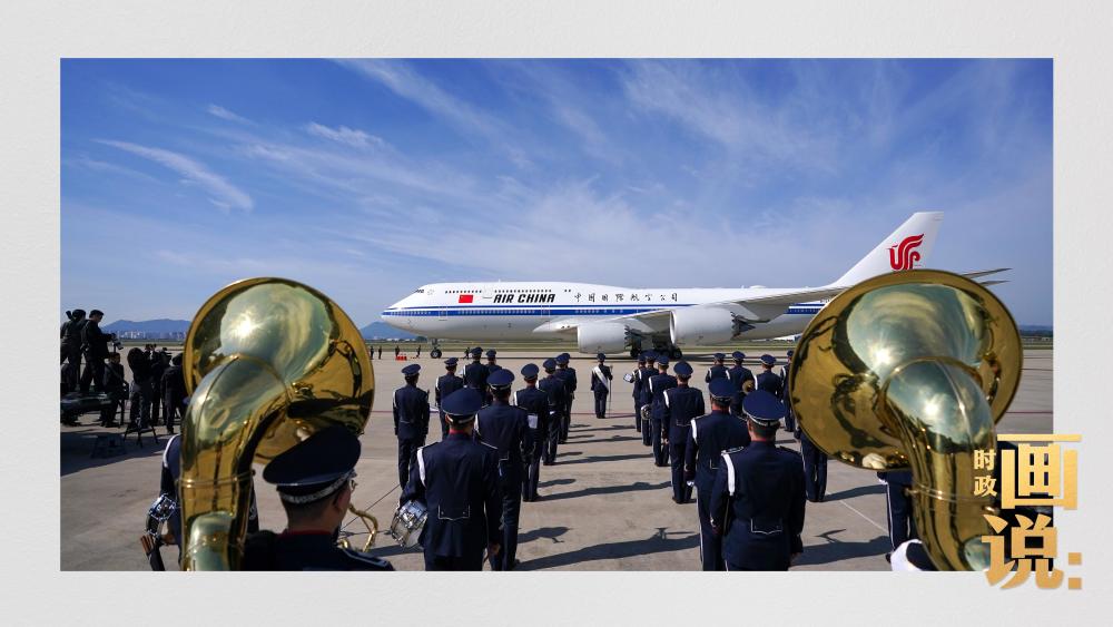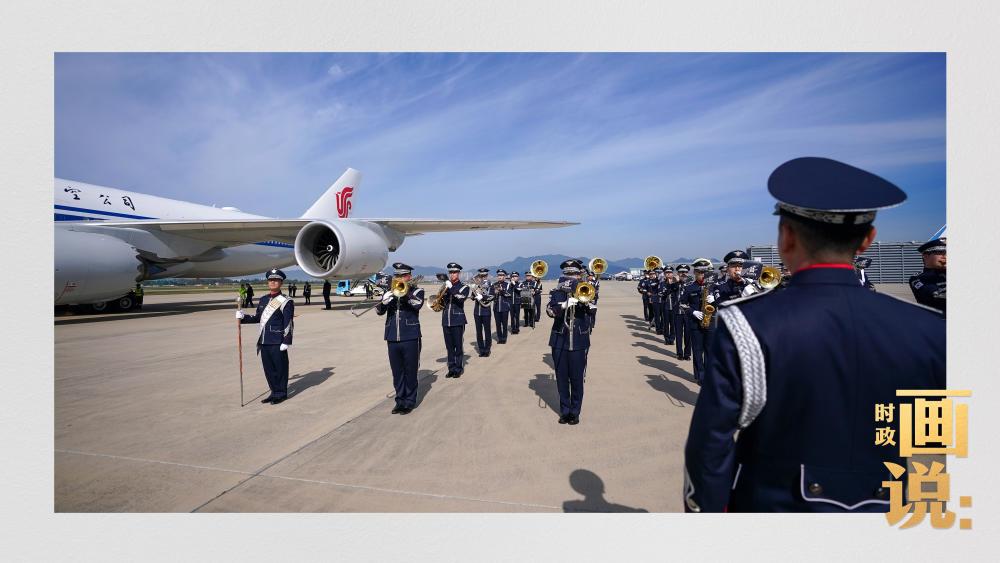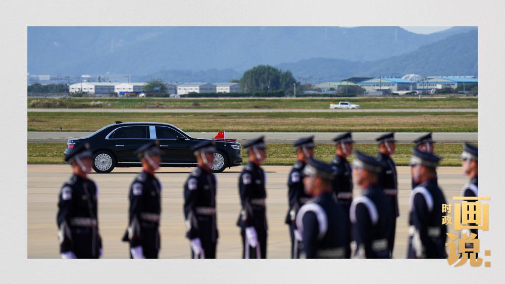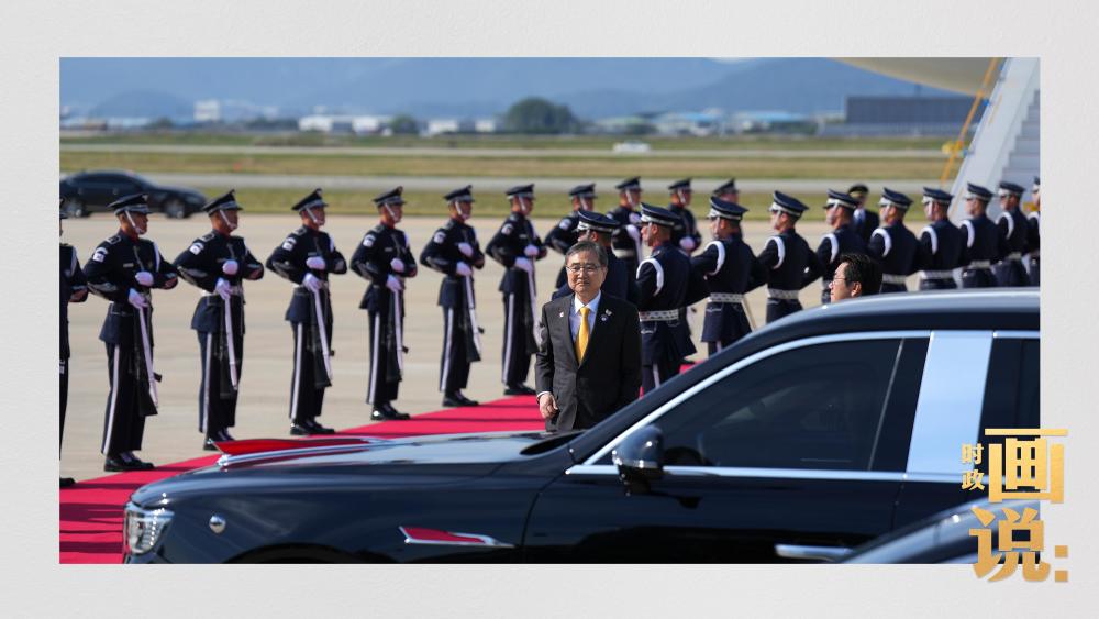 習(xí)近平抵達(dá)釜山金海國際機(jī)場時,韓國外長趙顯等高級官員熱情迎接。禮兵分列紅地毯兩側(cè)致敬,軍樂團(tuán)演奏行進(jìn)樂,機(jī)場鳴放21響禮炮。