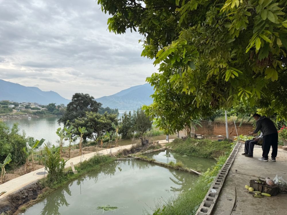 這是一座位于村莊最邊緣的農(nóng)家小院,居高臨下、視線開闊。站在小院向外望,一灣泛著微波的碧藍(lán)江水盡收眼底,再遠(yuǎn)處是一座座掩映在林間的村舍和農(nóng)田,目之所及,都是賞心悅目的景色。