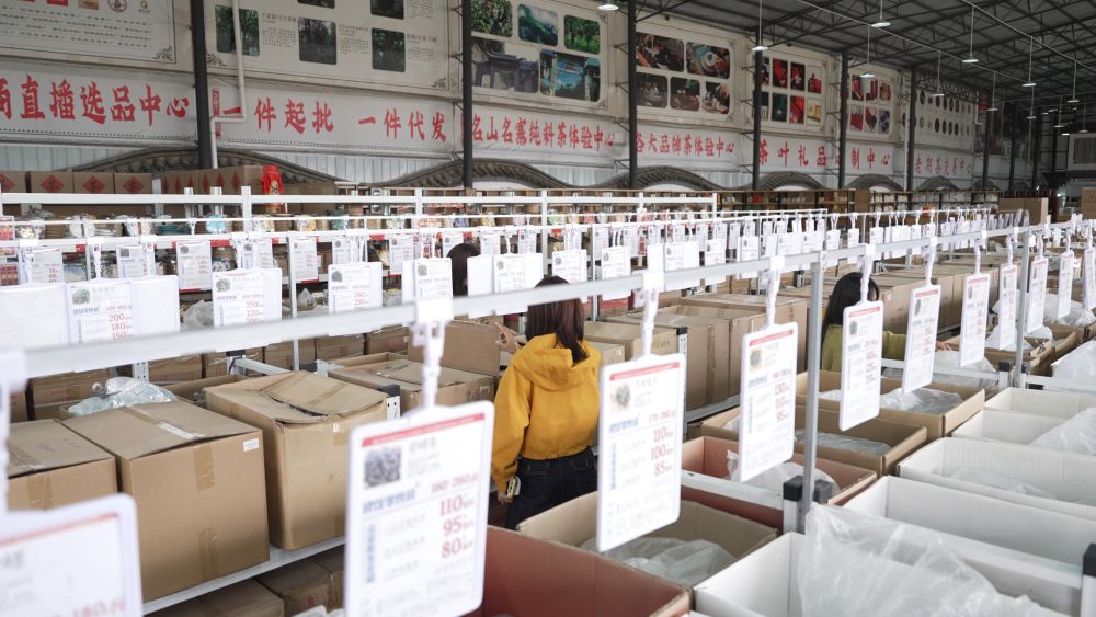 往里走,3000平方米茶倉(cāng)里,茶品從門(mén)口堆到倉(cāng)庫(kù)最里頭,讓人忍不住“哇”出聲!