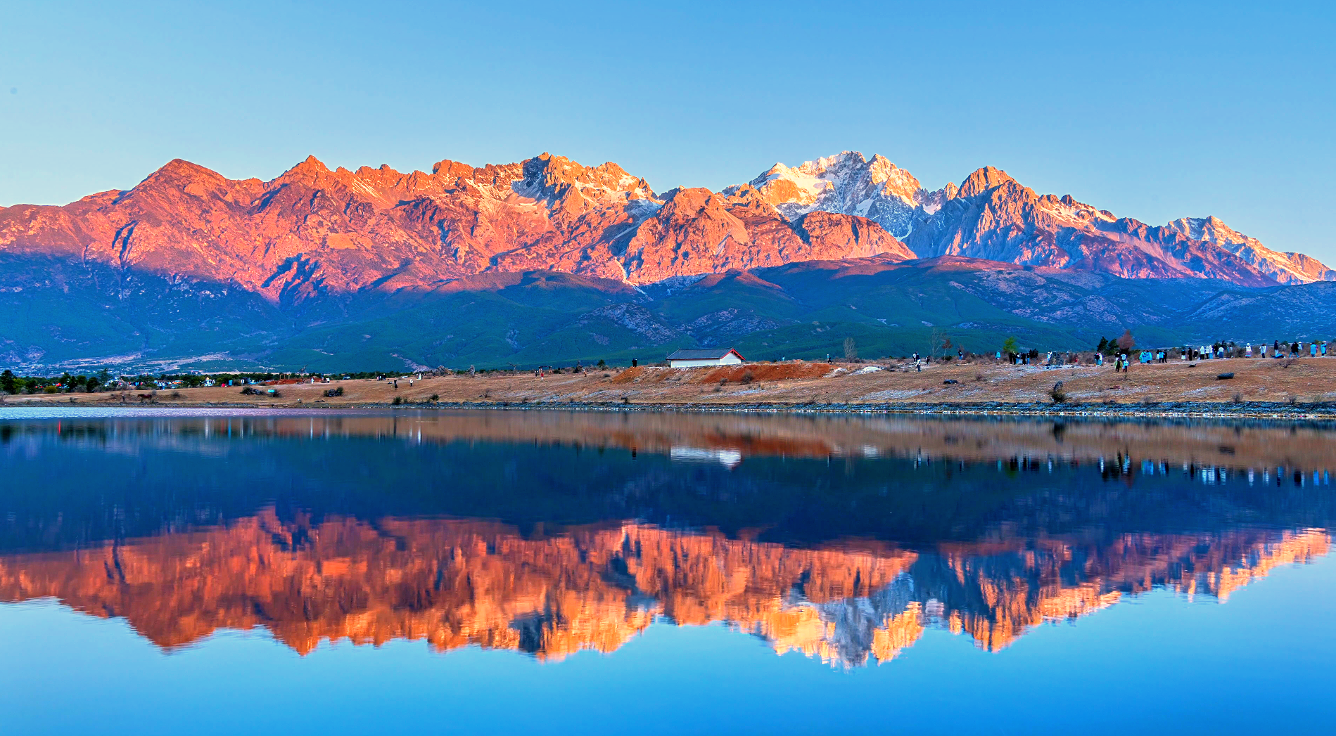 冬至過(guò)后,玉龍雪山幾場(chǎng)瑞雪飄落,山巔銀裝素裹。當(dāng)朝陽(yáng)升起,映照在皚皚白雪之上,那日照金山的盛景美得動(dòng)人心魄。若想近距離領(lǐng)略雪山的壯美,踏入玉龍雪山景區(qū)便是不二之選。在牦牛坪極目遠(yuǎn)眺,于藍(lán)月谷靜賞湖光山色,又或是在黑龍?zhí)丁⑶逑畮?kù)、中濟(jì)海公園漫步其間,都有機(jī)會(huì)捕捉到日照金山的絕美瞬間,將那震撼人心的畫(huà)面珍藏。